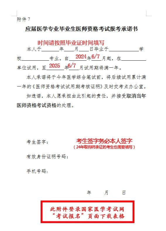 應屆畢業(yè)生還需提供《應屆醫(yī)學專業(yè)畢業(yè)生醫(yī)師資格考試報考承諾書》,請登錄國家醫(yī)學考試網(wǎng)考生服務系統(tǒng)下載;