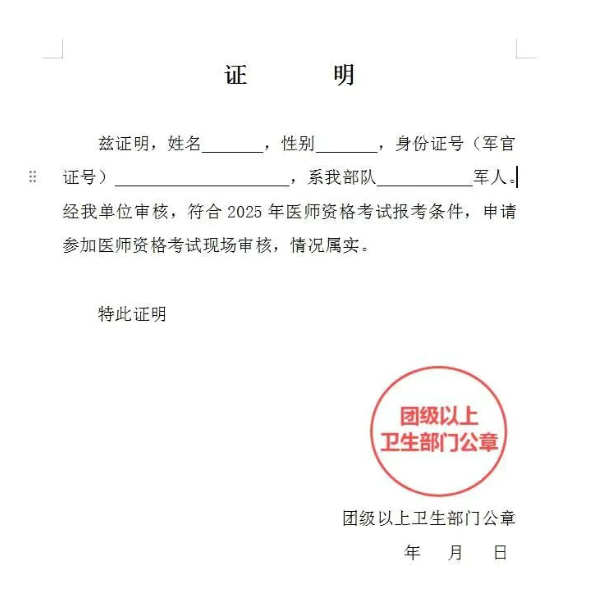 現(xiàn)役軍人需提供團級以上衛(wèi)生部門蓋章的審核證明(下載方式見文末);