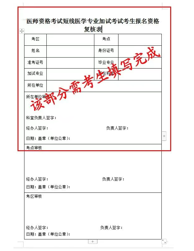 報考執(zhí)業(yè)醫(yī)師短線加試(院前急救、兒科)的考生還需提交《醫(yī)師資格考試短線醫(yī)學專業(yè)加試考試考生報名資格復核表》樣式如下(下載方式見文末),軍事醫(yī)學加試無需填寫;