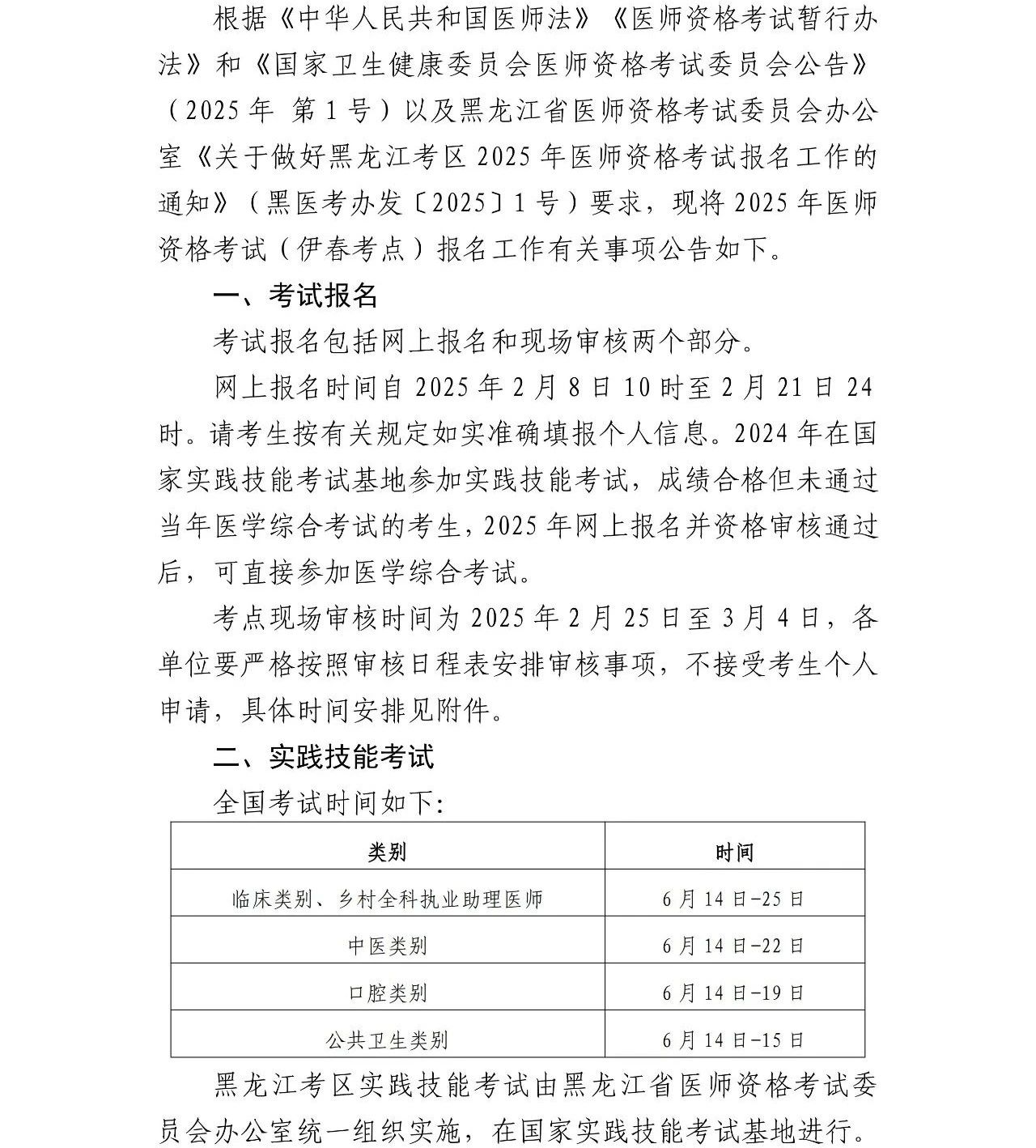 黑龍江伊春考點(diǎn)2025年醫(yī)師資格考試報(bào)名審核工作公告