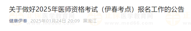 - · 黑龍江伊春考點(diǎn)2025年醫(yī)師資格考試報(bào)名審核工作公告