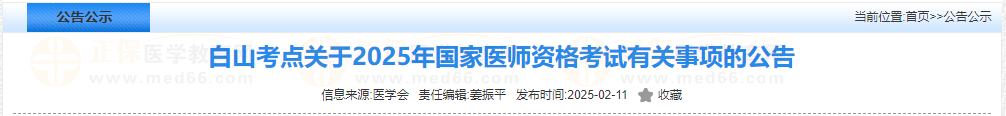 白山考點(diǎn)關(guān)于2025年國家醫(yī)師資格考試有關(guān)事項(xiàng)的公告