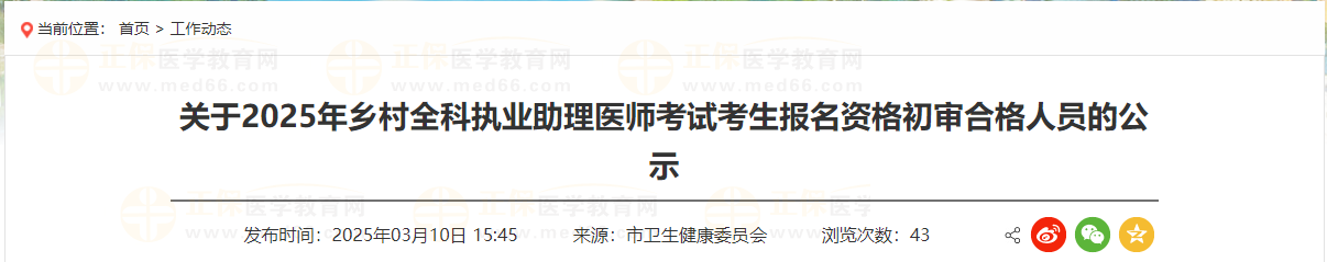 河南省鶴壁考點(diǎn)2025年鄉(xiāng)村全科執(zhí)業(yè)助理醫(yī)師考試考生報(bào)名資格初審合格人員公示通知已發(fā)布,共有21人初審合格,醫(yī)學(xué)教育網(wǎng)整理官方通知如下:
