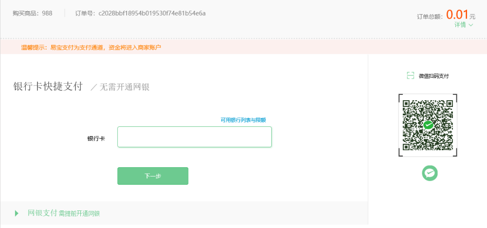 網(wǎng)上繳費由“易寶支付”繳費平臺提供服務,該平臺支持銀行卡快捷支付、網(wǎng)銀支付和微信支付,考生可根據(jù)自己的情況在安全的上網(wǎng)環(huán)境中進行網(wǎng)上繳費操作。
