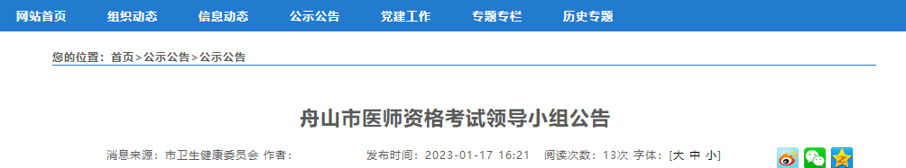 浙江省舟山市醫(yī)師資格考試領(lǐng)導(dǎo)小組公告:2023醫(yī)師資格考試安排