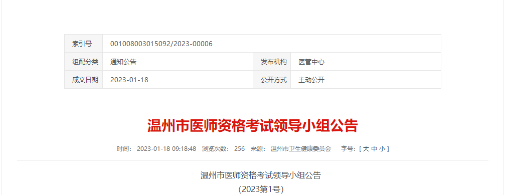 浙江省溫州市醫(yī)師資格考試領(lǐng)導(dǎo)小組公告:2023醫(yī)師資格考試安排/報(bào)名條件/繳費(fèi)/準(zhǔn)考證打印時(shí)間