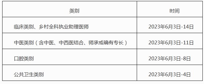2023年我省實(shí)踐技能考試均在國家實(shí)踐技能考試基地進(jìn)行,參加考試并通過者,成績兩年有效。實(shí)踐技能考試合格分?jǐn)?shù)線為 60 分。考試時(shí)間安排如下: