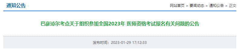 內(nèi)蒙古巴彥淖爾考點(diǎn)關(guān)于組織參加全國2023年醫(yī)師資格考試報(bào)名有關(guān)問題的公告