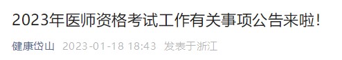浙江岱山考點(diǎn)2023醫(yī)師資格考試報(bào)名公告已出!2月17日線下審核!