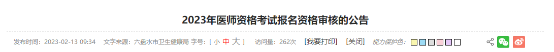 提醒!貴州六盤水市2023年醫(yī)師資格考試報(bào)名資格審核的公告