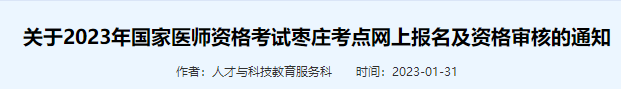 山東棗莊考點(diǎn)關(guān)于2023年國(guó)家醫(yī)師資格考試網(wǎng)上報(bào)名及資格審核的通知