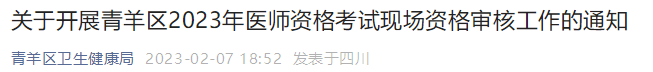四川成都青羊區(qū)2023年醫(yī)師資格考試現(xiàn)場資格審核工作的通知