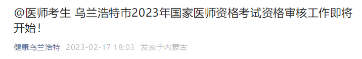 @醫(yī)師考生 內(nèi)蒙古烏蘭浩特市2023年國(guó)家醫(yī)師資格考試資格審核工作即將開始