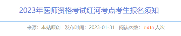 云南2023年醫(yī)師資格考試紅河考點考生報名須知!醫(yī)學(xué)教育網(wǎng)小編專門整理了官方發(fā)布的通知內(nèi)容如下,請相關(guān)考生及時查看!
