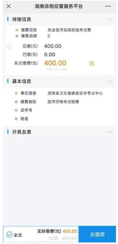 湖南考區(qū)2023年醫(yī)師資格考試醫(yī)學(xué)綜合考試“二試”考生繳費(fèi)操作流程