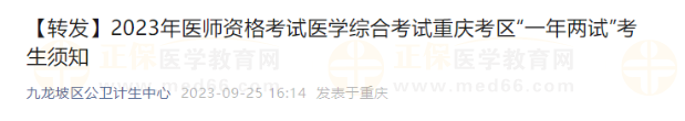 重慶九龍坡考區(qū)2023年醫(yī)師資格考試醫(yī)學(xué)綜合考試“一年兩試”考生須知