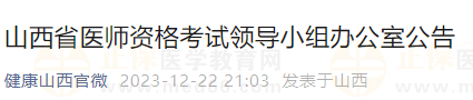 山西省2024年醫(yī)師資格考試領(lǐng)導(dǎo)小組辦公室公告發(fā)布!