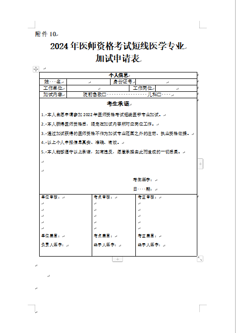 內(nèi)蒙古翁牛特旗考點2024年醫(yī)師資格考試短線醫(yī)學(xué)專業(yè)加試申請表下載
