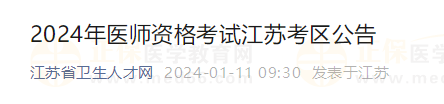 江蘇考區(qū)2024年醫(yī)師資格考試公告發(fā)布!報名/審核/繳費安排速查>