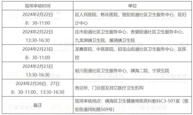 鎮(zhèn)海區(qū)2024年醫(yī)師資格考試報(bào)名現(xiàn)場(chǎng)審核安排表