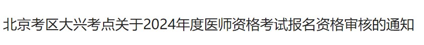 官方速報!北京大興考區(qū)2024醫(yī)師資格考試報名審核安排已出!大興考區(qū)官方發(fā)布的2024醫(yī)師資格考試報名通知內容包含報名審核時間安排、審核資料詳細要求以及考點咨詢電話。醫(yī)學教育網小編整理如下,請相關考生及時查看,做好報名準備!