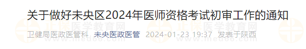 1月24日開(kāi)始!陜西西安未央?yún)^(qū)2024年醫(yī)師資格考試初審工作通知