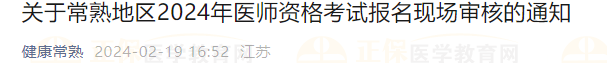 2月21日開始!江蘇蘇州常熟地區(qū)2024年醫(yī)師資格考試報(bào)名現(xiàn)場審核的通知