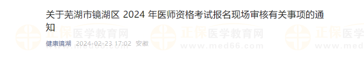 安徽蕪湖市鏡湖區(qū)2024年醫(yī)師資格考試報名現(xiàn)場審核有關(guān)事項的通知