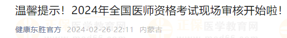 溫馨提示!2024年內(nèi)蒙古鄂爾多斯市東勝區(qū)醫(yī)師資格考試現(xiàn)場(chǎng)審核開始啦!