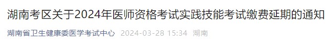 【官方】繳費延期!湖南省2024醫(yī)師資格實踐技能繳費延長至4月1日