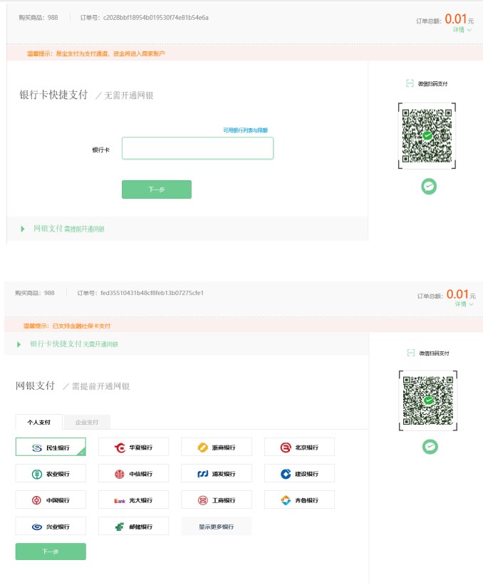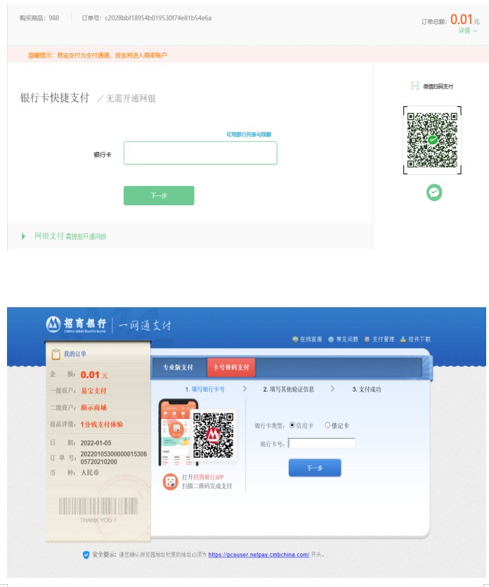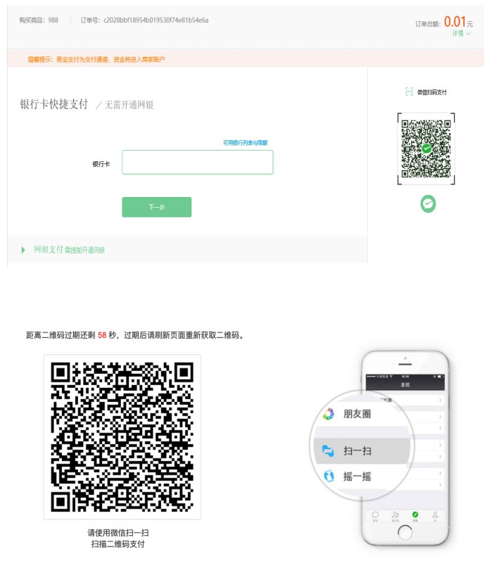 4.跳轉(zhuǎn)至“易寶支付”收銀臺(tái)頁(yè)面完成繳費(fèi)。