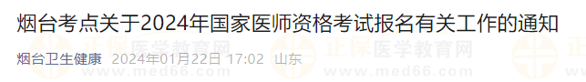 山東煙臺考點(diǎn)關(guān)于2024年醫(yī)師資格考試報(bào)名有關(guān)工作的通知