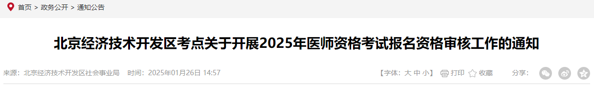 北京經(jīng)濟(jì)技術(shù)開發(fā)區(qū)官方發(fā)布2025年醫(yī)師資格考試報名審核時間|要求,請相關(guān)考生及時查看官方通知要求,按時參與報名審核。
