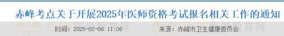 內(nèi)蒙古自治區(qū)赤峰考點關(guān)于2025年醫(yī)師資格考試報名相關(guān)工作的通知