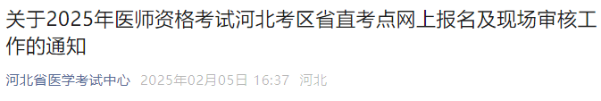 河北省直考點2025年醫(yī)師資格考試報名審核要求已公布!請相關考生及時查看官方通知要求,按時參與報名審核。