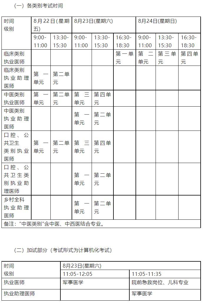 2025年,醫(yī)師資格考試醫(yī)學(xué)綜合考試均為計(jì)算機(jī)化考試。具體時(shí)間安排如下:
