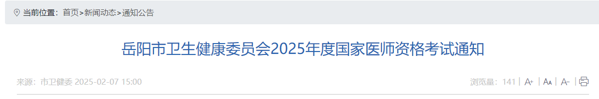 (二)報名參加2025年醫(yī)師資格考試的考生,均需關(guān)注湖南省衛(wèi)生健康委醫(yī)學(xué)考試中心微信公眾號、岳陽市衛(wèi)生健康委員會官網(wǎng)、健康微岳陽微信公眾號(見附件2),及時獲取考試相關(guān)信息。