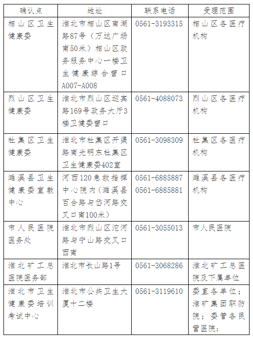 (五)淮北考點各報名點地址及咨詢聯(lián)系電話: