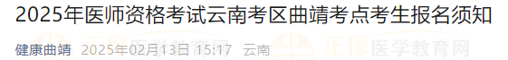 2025年醫(yī)師資格考試(云南考區(qū)曲靖考點(diǎn))考生報(bào)名須知