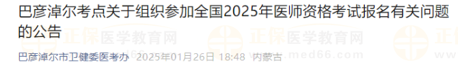 內(nèi)蒙古巴彥淖爾考點(diǎn)關(guān)于2025年醫(yī)師資格考試報(bào)名有關(guān)問題的公告