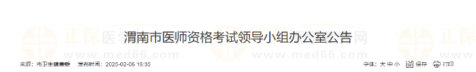 陜西省渭南市2025醫(yī)師資格考試領導小組辦公室公告!請相關考生仔細查看具體要求,做好報名工作準備!