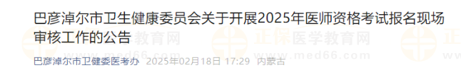 內(nèi)蒙古巴彥淖爾市2025年醫(yī)師資格考試報(bào)名現(xiàn)場審核工作的公告