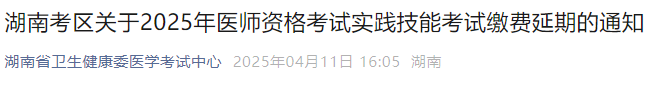 繳費(fèi)延期!湖南省2025年醫(yī)師資格實踐技能繳費(fèi)延長至4月12日!