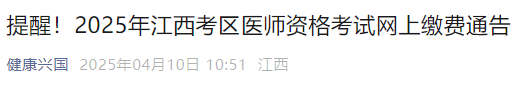 提醒!2025年江西考區(qū)醫(yī)師資格考試網(wǎng)上繳費通告