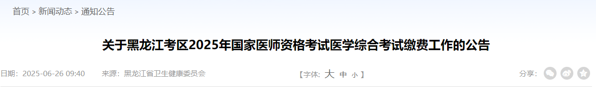 黑龍江省2025年醫(yī)師資格考試醫(yī)學(xué)綜合考試?yán)U費(fèi)已開(kāi)始,速去!