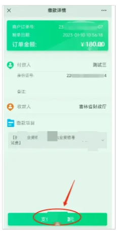4、再次核對(duì)金額,點(diǎn)擊支付”按鈕。如下圖。