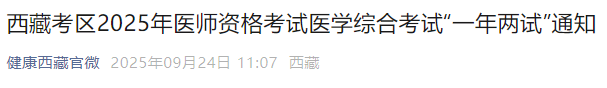 根據(jù)醫(yī)師資格考試工作安排,2025年醫(yī)師資格考試醫(yī)學綜合考試“一年兩試”網(wǎng)上報名將于9月24日開始,現(xiàn)將西藏考區(qū)考試有關(guān)事項通知如下: