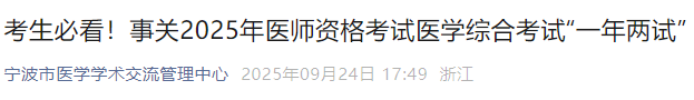 浙江寧波2025年醫(yī)師資格“一年兩試”報(bào)名繳費(fèi)已開(kāi)始!