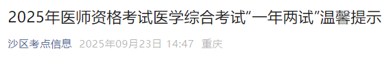 - · 重慶考區(qū)2025年醫(yī)師資格“一年兩試”報(bào)名|繳費(fèi)|考試安排