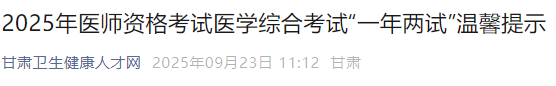 - · 甘肅省2025年醫(yī)師資格“一年兩試”報(bào)名繳費(fèi)時(shí)間已定,速看!